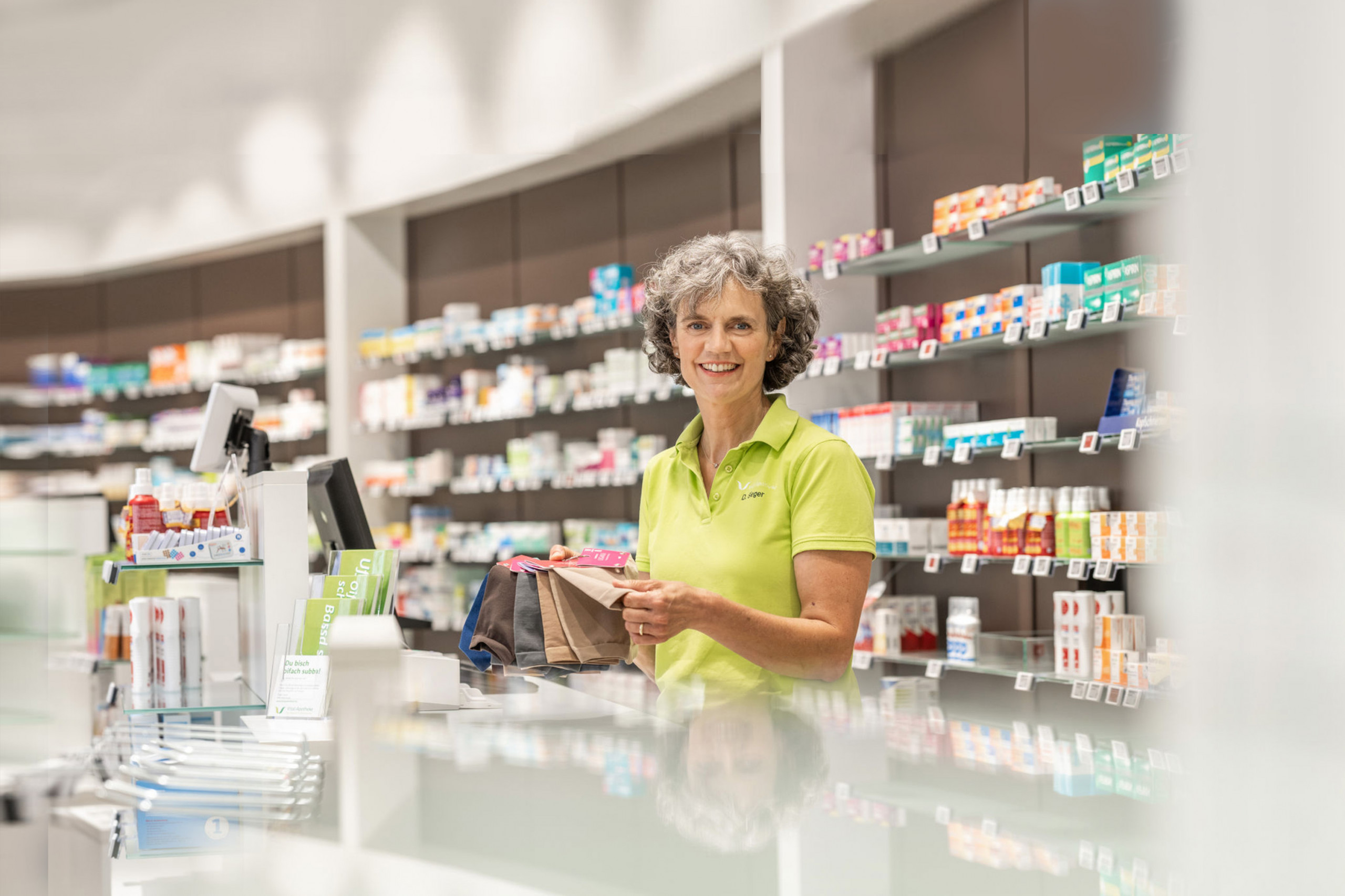 Sobald Ihre Strümpfe in der Apotheke eingetroffen sind, laden wir Sie zur Anprobe ein. Wir überprüfen den Sitz und geben Ihnen wertvolle Tipps zur richtigen Handhabung und Pflege der Strümpfe. Auch nach dem Kauf stehen wir Ihnen mit Rat und Tat zur Seite. Bei Fragen oder bei Problemen mit den Strümpfen sind wir jederzeit für Sie da.