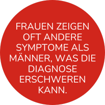 Männer verspüren oft die „klassischen“ starken Brust-schmerzen mit Ausstrahlung in den linken Arm. Bei Frauen sind die Symptome häufig unspezifischer, was dazu führt, dass Herzinfarkte bei Frauen später erkannt werden.